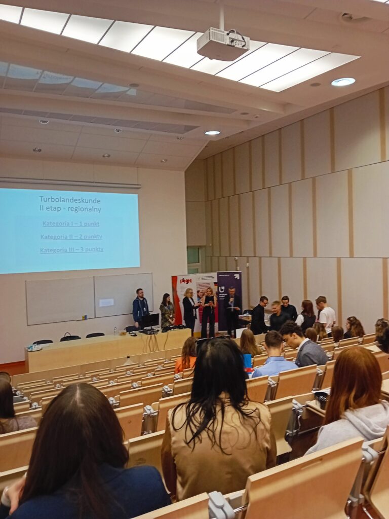 11.04.2025 r. odbył się na Wydziale Filologicznym Uniwersytetu Łódzkiego etap regionalny konkursu „Turbolandeskunde – Wędrówka po krajach niemieckiego obszaru językowego”. W tym roku uczniowie wykazywali się wiedzą na temat Niemiec. Tematyka konkursu obejmowała różne zagadnienia: podstawowe wiadomości geograficzne, podział administracyjny, największe miasta, najatrakcyjniejsze zabytki, gospodarka, media, słynne postacie, najważniejsze święta, tradycyjne potrawy i inne.